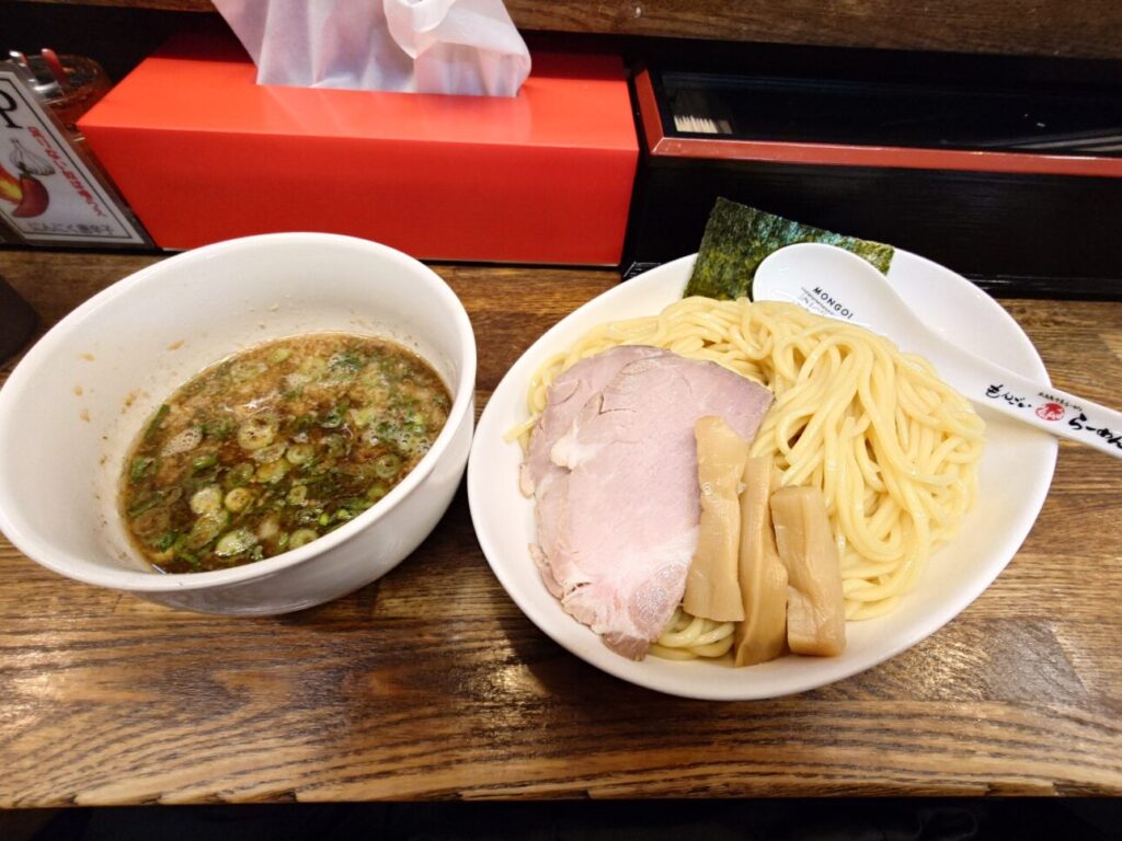 こちらのつけ汁はあっさりしていますが、魚介が少し強いのか食べ進めると飽きがでてきてしまいました。好みとしてはらーめんのほうかな😋