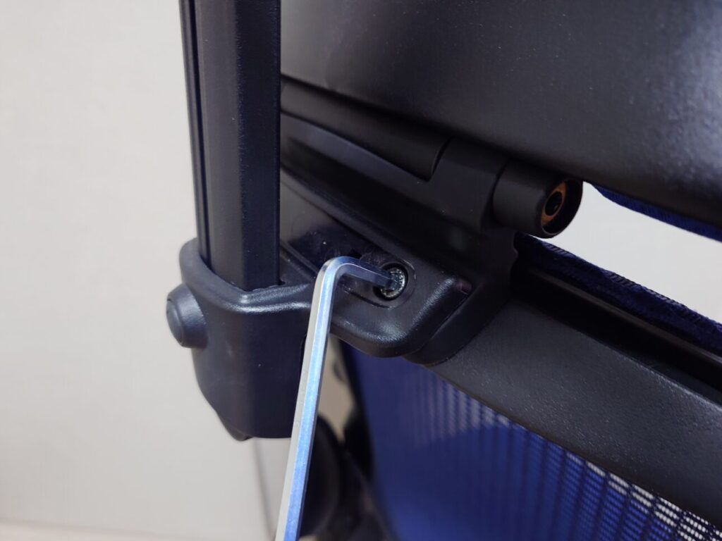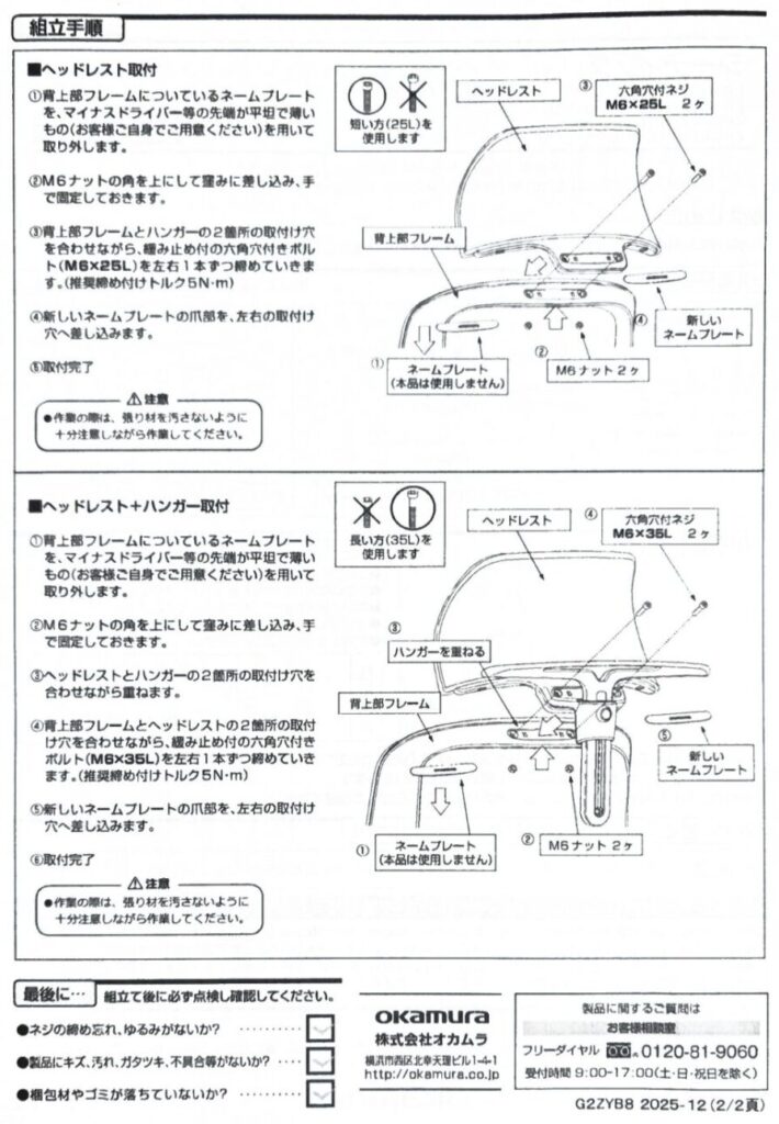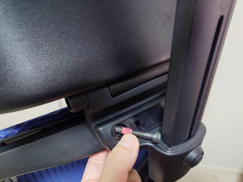椅子本体+ヘッドレスト+ハンガーの順で載せていき、M6×35Lのネジ2本で止めます。