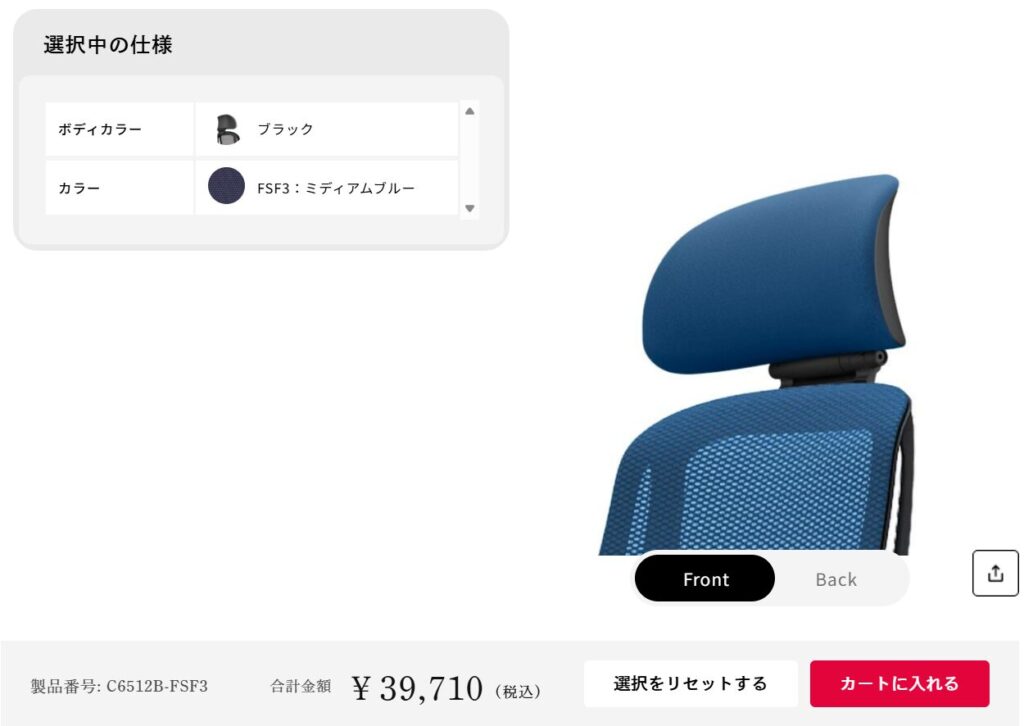 当時、オカムラのSylphyが腰の負担が少ないと聞いていたので、以下の仕様を組んで購入していました。かなり盛りだくさんな贅沢仕様にしていたため、16万円ぐらいしていたかと思います😅