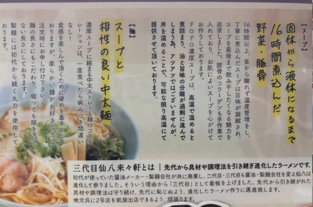 【三代目 仙八来々軒】濃厚スープのラーメンを求めて!
