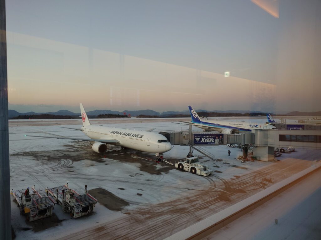 広島空港は山間部にあり、冬季は雪が降るエリアにあります。