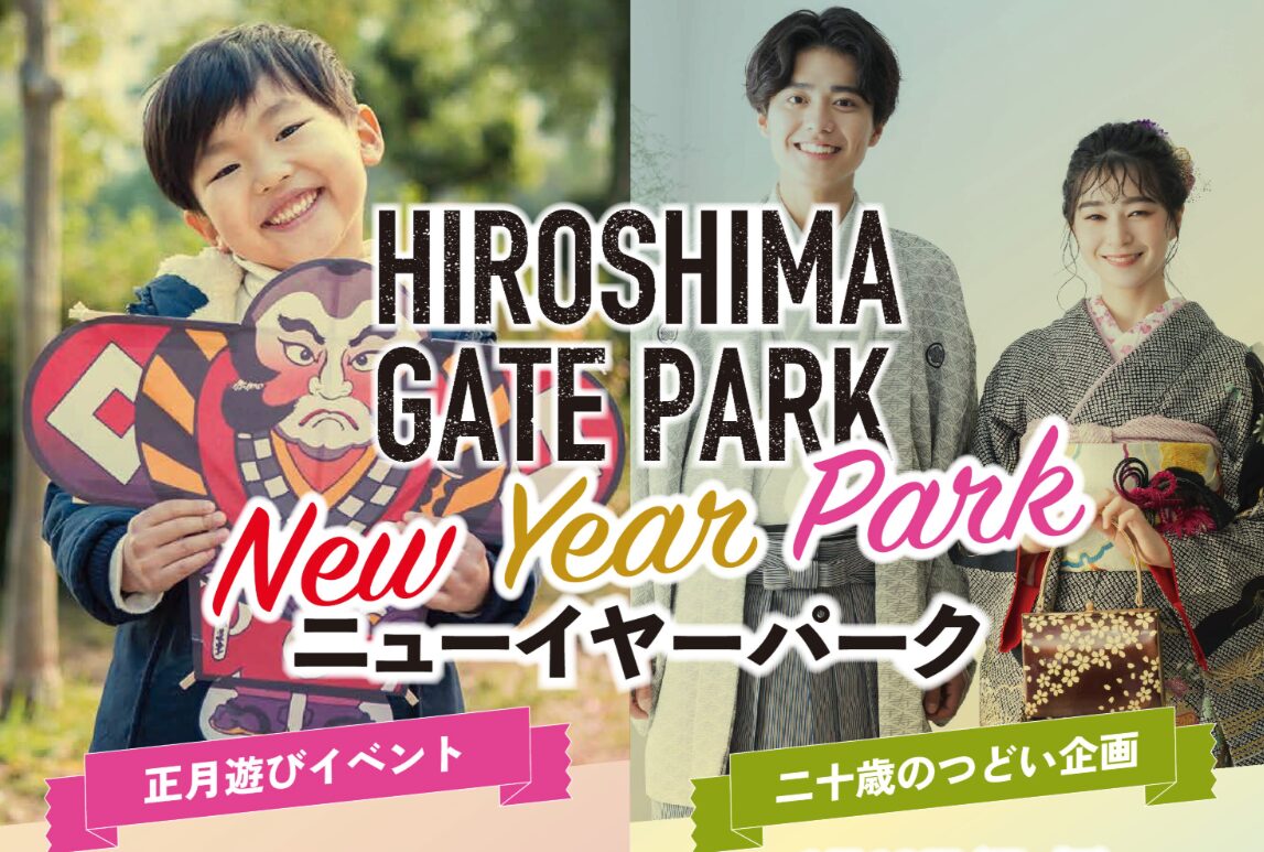 Hiroshima Gate Park will host a New Year’s fun event on January 10th (Sat) and 11th (Sun), followed by a 20th birthday celebration on January 12th (Mon, a national holiday).