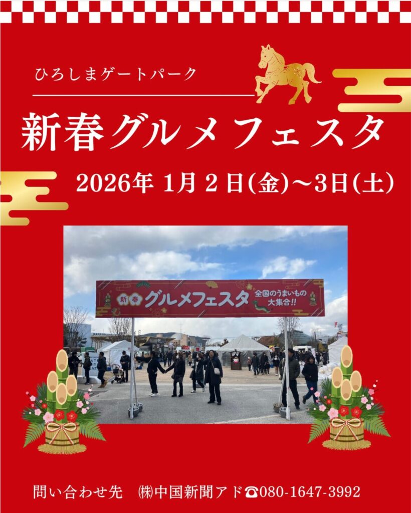 ひろしまゲートパークにて1/2、1/3の両日、新春グルメフェスタが開催されます。